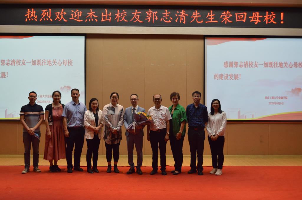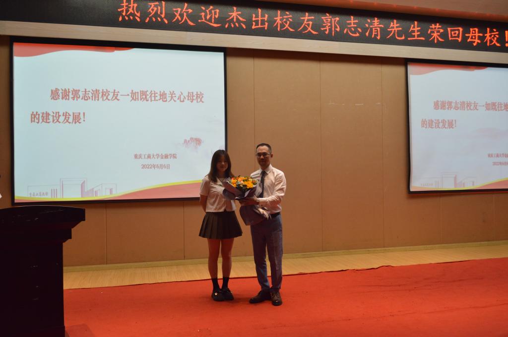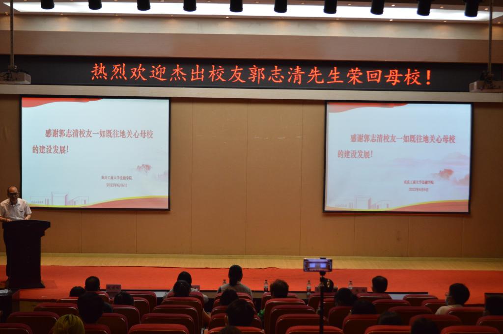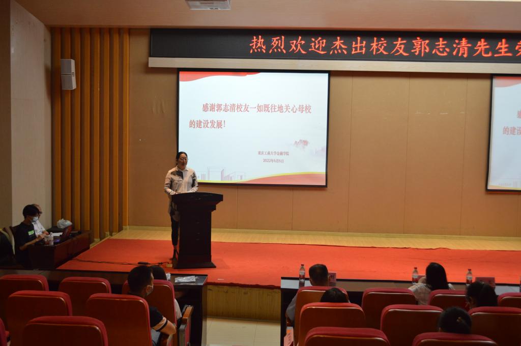 王兰致欢迎辞,对郭志清员工百忙之中参加校庆七十周年系列活动,并与公司师生分享成人、成才、成功的点点滴滴表示热烈欢迎和诚挚感谢。