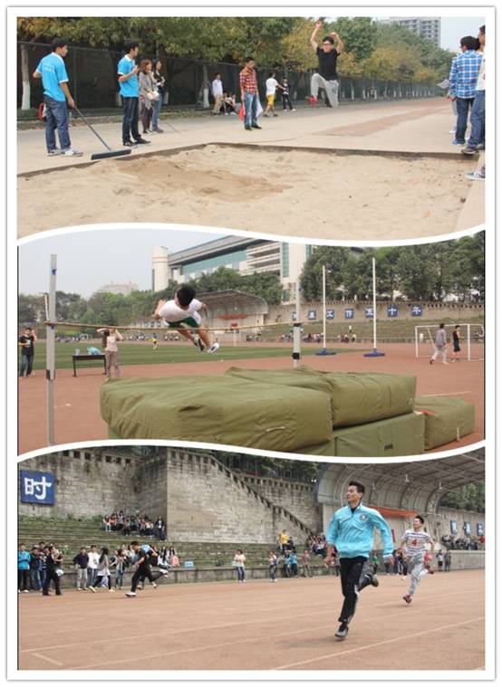 本次运动会共设有短跑、长跑、跳高、跳远、三级跳、掷铅球、集体跳绳、踢毽等12个项目。运动健儿们齐集主校区田径场,同台竞技,各项目的角逐都精彩纷
