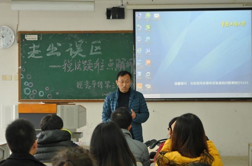 激昂的音乐,绚烂的画面,一段精美的视频拉开了此次活动的序幕,“税收抵免”、“印花税”、“税收保全”等一系列专业术语出现在“我比你猜”环节,同学拼尽全力的展示更是引起了现场笑声连连。在“风采展示”中,同学们结合精细的PPT,用事实举例,形象地对“增值税”,“企业所得税”,“工资·薪金所得税”中的疑难纷纷进行了详尽的解析,为同学们上了精彩的一课。此次活动在财金老师尚老师的点评中画上了句号,向老师不仅肯定了大家充分的前期准备,也对同学们崭新的学习方式表示赞同与鼓励。