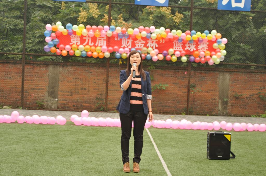在主持人对“财金杯”篮球赛进行简短的介绍之后,兰丽娟老师为开幕式致辞。她表示,篮球是一项极富魅力的体育运动,希望大家赛出风格、赛出水平,并祝愿本次比赛取得圆满成功。运动员代表赵亮学长代表全体参赛队员宣誓,并倡导各班同学抱着友谊第一比赛第二的信念,团结友好地完成比赛。随着裁判员一声哨响,第九届“财金杯”篮球赛正式开始,微凉的秋意挡不住澎湃的热情,首场竞技在13级金融一、二班与12级金融二、五班;13级金融三、四班与13级金工一、二班之间火热展开。