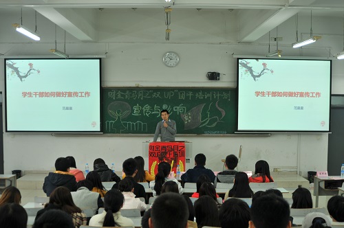 11月14日下午,财政WilliamHill中文官网“双up”团干培训会第三期于博智楼406教室举行。威廉希尔WilliamHill党政办公室范星星老师、财金公司分团委书记兰丽娟老师莅临宣传,担任嘉宾,财政WilliamHill中文官网分团委员工会干部、2013级各班班长、团支书参加了本次培训会。