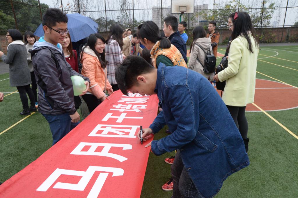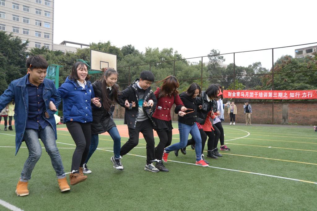 第三期团干培训的地点从教室转换到球场,以户外素质拓展的形式促进团干们“知行、力行合一”。团干们根据分发的荧光棒上的标记组成不同的队伍,选出队长并确定名字和口号。考验团队协作的“十人九足”、搭档无间合作的“搬运气球”活动让欢声笑语在球场上回荡。扣人心弦的“水瓶保卫战”随之打响,团干们在随乐而动和紧张夺瓶的两种状态中任意切换。而“搭桥过河”活动中,一张张报纸承载的是团队的默契和信任。活动中途虽有小雨飘落,大家参与活动的热情却依旧饱满。