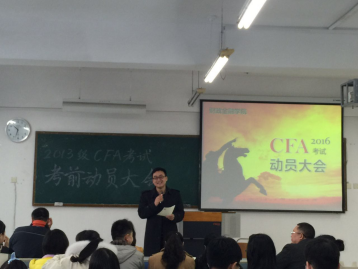 大会首先由李云龙先生对目前同学们的情况进行总结,并对同学们进行了鼓励,希望大家调整心态,投入到考试复习中,积极备考。然后,莫云副经理就开学举办的CFA知识竞赛进行了总结,公布获奖名单,同时鼓励同学们再接再厉,在接下来的时间里取得更优异的成绩。紧接着毛跃一副经理宣布了公司关于CFA项目激励机制管理办法,使同学们学习的积极性进一步提高。随后的时间,融仕国际的两位讲师程老师以及滕老师先后发言,为同学们强调了CFA学习的重点和方法,并鼓励大家全身心投入到复习,努力取得好的成绩。之后,12级CFA的龚会淋同学结合自身经历,为同学们总结了复习的关键的方法,让同学们获取了更多的经验来准备接下来复习。13级CFA员工代表南方杰同学也代表全体13级同学发言,表明了同学们在未来备考和考试中的决心的信心,争取创造一个更优异的成绩。最后杨萍书记进行总结讲话,通过四句话总结了对于同学们和要求和期待,并希望同学们都能取得满意的成绩。