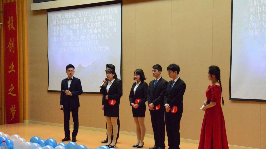 历经初赛和复赛的检验,六支队伍脱颖而出,闯入决赛,角逐冠军荣耀。决赛第一轮,PPT项目陈述,六支队在六分钟的陈述时间里,将项目背景、市场分析、财务报告等专业内容清晰讲解,同时也要面对三分钟的评委老师提问。各团队成员在这一环节比拼中各司其职,轮番登场,结合各项图表和数据,有力证明选手们所创所想的可行性。短暂的时间里,各团队构思精妙,专业性强,有条不紊地向观众们完美呈现创业“金点子”。第二轮比赛,广而告之,要求每个团队在三分钟的时间内为自己的项目现场演绎一支广告,既要突出产品优势,同时能抓住“投资人”的心。Wavers团队将时下大热电影《疯狂动物城》当中的经典场景融入广告创意中,为自己的项目打了个漂亮的宣传战。两轮紧张激烈的较量后,五十位“大众投资人”将手中的“投资资金”投给心仪的项目。专业的评委老师评分结合“大众投资人”的投票,此次大赛的最终结果尘埃落定。财金公司参赛项目“五滴奶公益APP”凭借将学单词和公益结合的独特创意摘得冠军并收获一千五百元的创业基金。WAVE.为舞舞蹈服务平台、微工商--老员工社会实践机会平台荣获二等奖,及老APP、小蘑菇户外露营基地和未来课程表则将三等奖收入囊中。