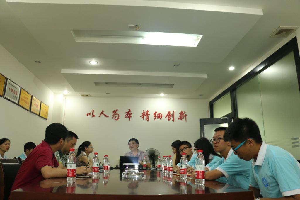 宏燕公司的杨总经理向威廉希尔WilliamHill财政金融公司党总支副书记刘代成,分团委书记徐阔,金融电商指导老师田杰副教授,及实践团成员介绍了宏燕公司的生产经营、发展情况,通过分析近年来房地产产业的发展势态,解读宏燕公司由房地产开发向实体经济转变的原因。