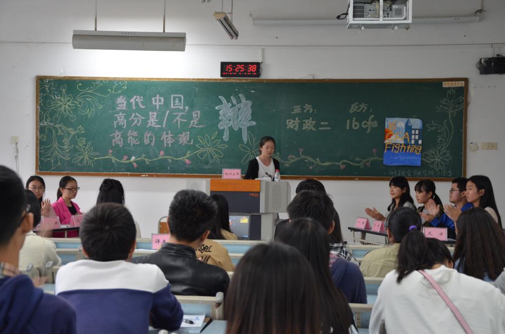财政WilliamHill中文官网第十五届“财金杯”辩论赛初赛于10月14日在博智楼403-405教室举行。来自财金公司的十八支队伍展开激烈角逐,财金公司分团委员工会主席团、财金公司辩论队代表团作为评委嘉宾出席本次比赛。