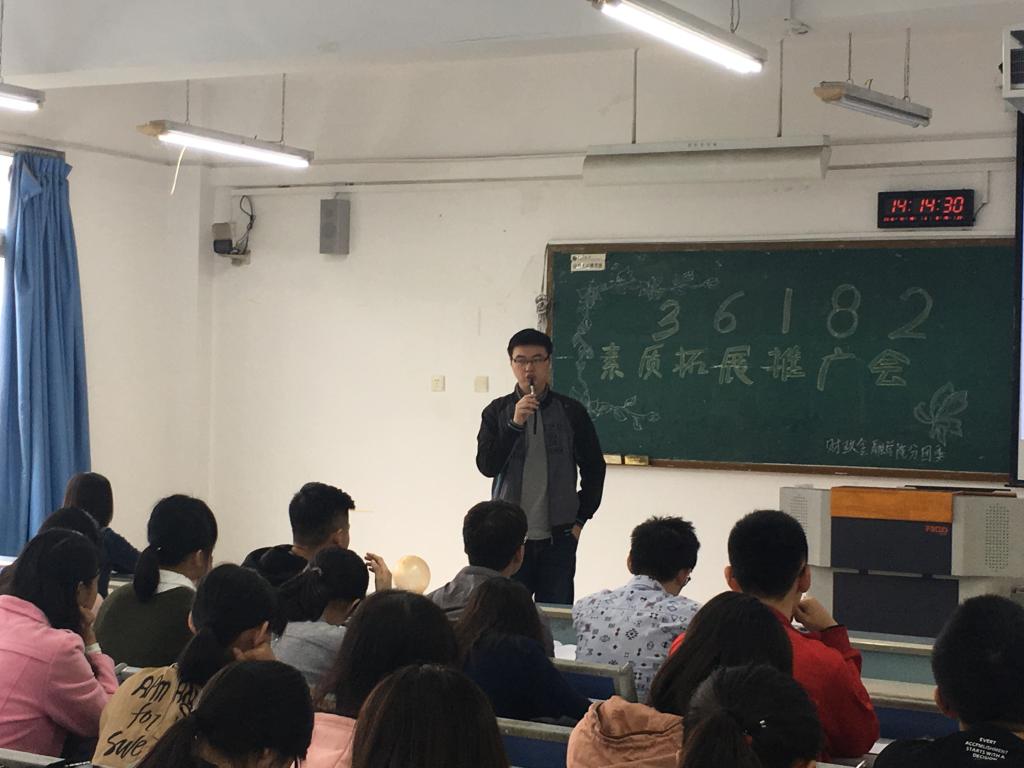 活动由内容讲解和问答互动两个部分组成。庞世强主席为本次活动做开场词,告诉大家应正确地认识和运用“36182”素质拓展工程,不断提高自己的综合素质。紧接着,何凯萌部长和余柔芳部长向大家详细地介绍了“36182”的内涵,强调了素拓分对每一个老员工的重要性,更告诉了大家如何获得素拓分。互动环节,同学们在参与游戏和赢得奖品的同时,也对“36182”有了更为深刻的认识。最后陈曦曦部长对本次活动进行了简单总结。