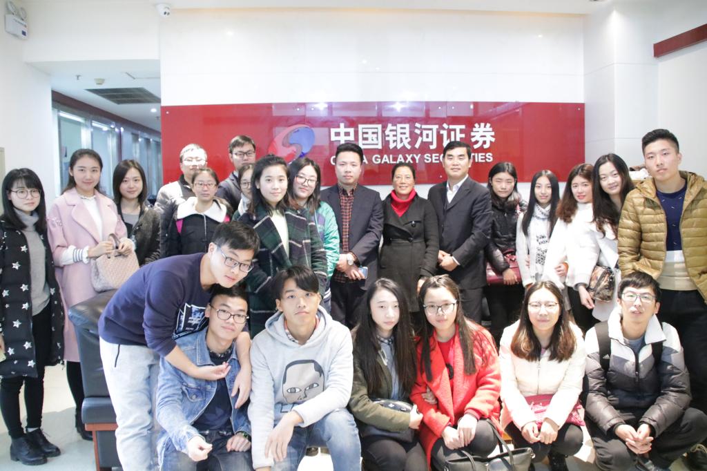 同学们在总经理唐贺之、渠道经理付为可引领下,首先参观了中国银河证券股份有限公司。随后,在公司会议室,与银河证券营业部总经理唐贺之、渠道经理付为可进行交流学习。首先,唐贺之总经理为我们介绍了中国银行证券股份有限公司的关于我们,发展历史。中国银河证券股份有限公司是经国务院批准,在收购原中国银河证券有限责任公司的证券经纪业务、投行业务及相关资产的基础上,由中国银河金融控股有限责任公司作为主发起人,联合北京清源德丰创业投资有限公司、重庆水务集团股份有限公司、中国通用技术控股有限责任公司、中国建材股份有限公司4家国内投资者,于2007年共同发起设立的全国性综合类证券公司。公司的经营范围包括:证券经纪,证券投资咨询,证券资产管理,融资融券,以及中国证监会批准的其他业务。中国银河证券在“2016中国企业500强”中排名第481位,在中国同类公司中排名前三。