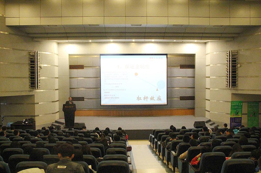 宣讲会上,黄谦书记、陆彦女士、余红霞老师、万鹏先生先后发表了讲话。其中,黄谦书记对“中金所杯”金融知识大赛进行了简单的介绍,余红霞老师希望同学们抓住机会锻炼能力,充分鼓励同学们参赛。陆彦女士和万鹏先生则详细的介绍了比赛流程以及相关的金融知识。
