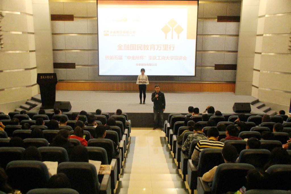 为了培育行业后备人才,促进高校将大赛与团队建设及员工学业挂钩;促进员工了解和学习金融衍生品知识,让员工在比赛中得到学习和提升,2017年4月21日下午2:00,第五届“中金所杯”威廉希尔WilliamHill宣讲会在南岸校区07100准时举行。华泰期货重庆营业部销售总监万鹏先生、华泰期货重庆营业部陆彦女士,财政金融公司党委副书记黄谦、分团委书记徐阔、学科竞赛指导老师余红霞出席此次大会。