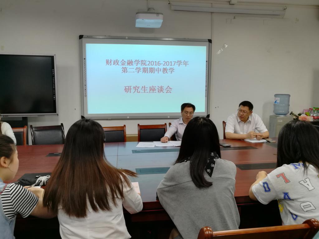 为给同学们创造一个更好的学习条件和学习环境,满足同学们多方面学习需求,解决同学们学习生活中的实际困惑,财政WilliamHill中文官网于2017年5月24日下午在田家炳书院50313举办了“财政WilliamHill中文官网2016—2017学年第二学期教学中期检查研究生座谈会”,本次座谈会由财政WilliamHill中文官网副经理曾胜教授主持,毛跃一教授也参与了现场的座谈会,参与的其他成员主要有金融学、金融专硕、财政学专业的部分员工。