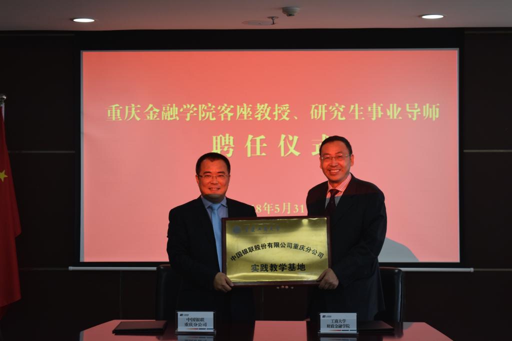 首先,银联重庆分公司总经理罗泳涛致欢迎辞,他表示随着金融科技的不断发展,支付平台经济的研究,相关监管的研究、市场状态的研究以及定价的研究,大数据、区块链的研究等行业发展前沿问题,作为传统最大的支付平台,发展遇到了一些阻碍,需要同高校大力合作,互通有无,故而,热切希望同公司多方面全方位开展深入的合作。随后,罗泳涛总经理和公司刁孝华经理分别代表双方签订了校企合作协议。刁经理代表公司给罗总颁发客座教授和研究生事业导师聘书。刁经理代表公司给授予实践实习基地牌。