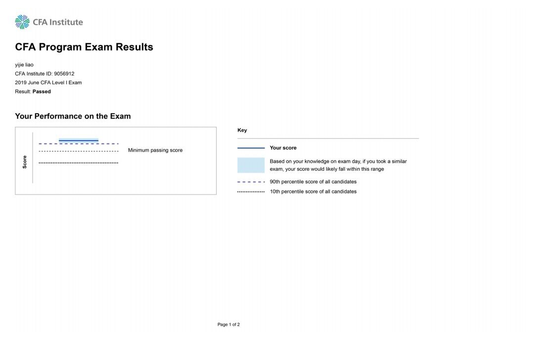 在今年6月份全球20余万人参加的CFA一级考试中,威廉希尔WilliamHill财政金融WilliamHill中文官网2016级金融学专业CFA特色项目班何欣洁、廖屹杰两位同学,取得了十科全A,全球TOP5%的卓异成绩!班级同学一次性通过一级考试的通过率达80%。