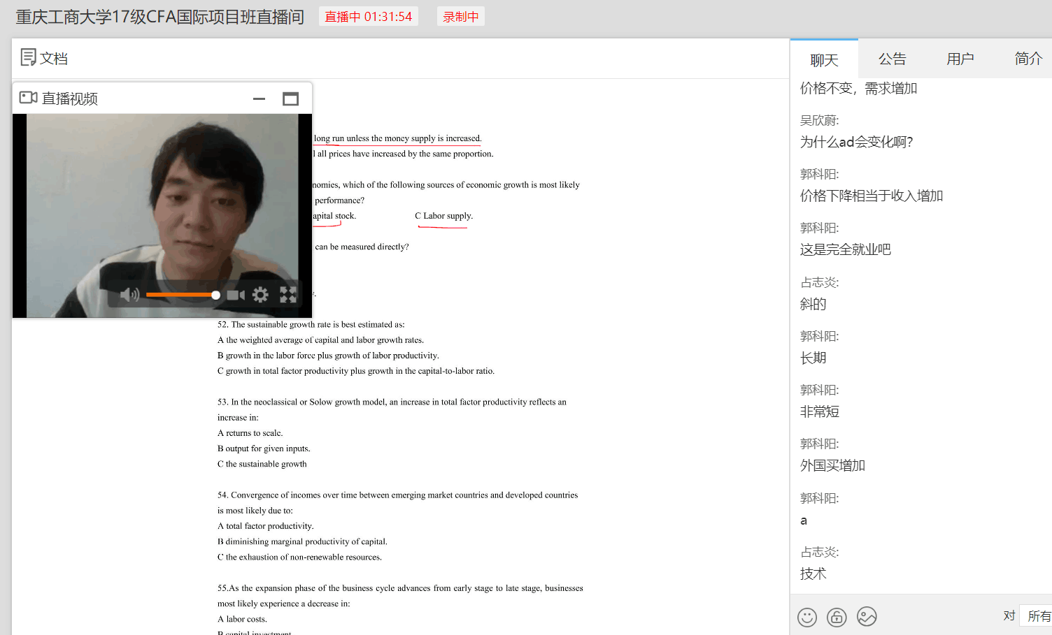 为加强疫情防控,保证公司CFA教学进度和教学质量,实现停课不停教、停课不停学的工作要求,公司和融仕国际教育研究决定在威廉希尔WilliamHill允许员工返校之前,利用云直播平台开设2019-2020-第二学期CFA直播课程,公司CFA各年级于3月2日已正式开展网络直播教学。