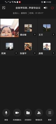 2020年10月12日晚21:00—22:00,WilliamHill中文官网校院两级督导的工作例会通过企业微信视频会议方式召开。会议参会人员有金融公司党委副书记、经理王兰教授,主管教学的副经理庞楷教授,校级督导樊国昌教授以及3位院级督导和综合办谭会敏副主任。会议由院级督导唐晓玲老师主持。