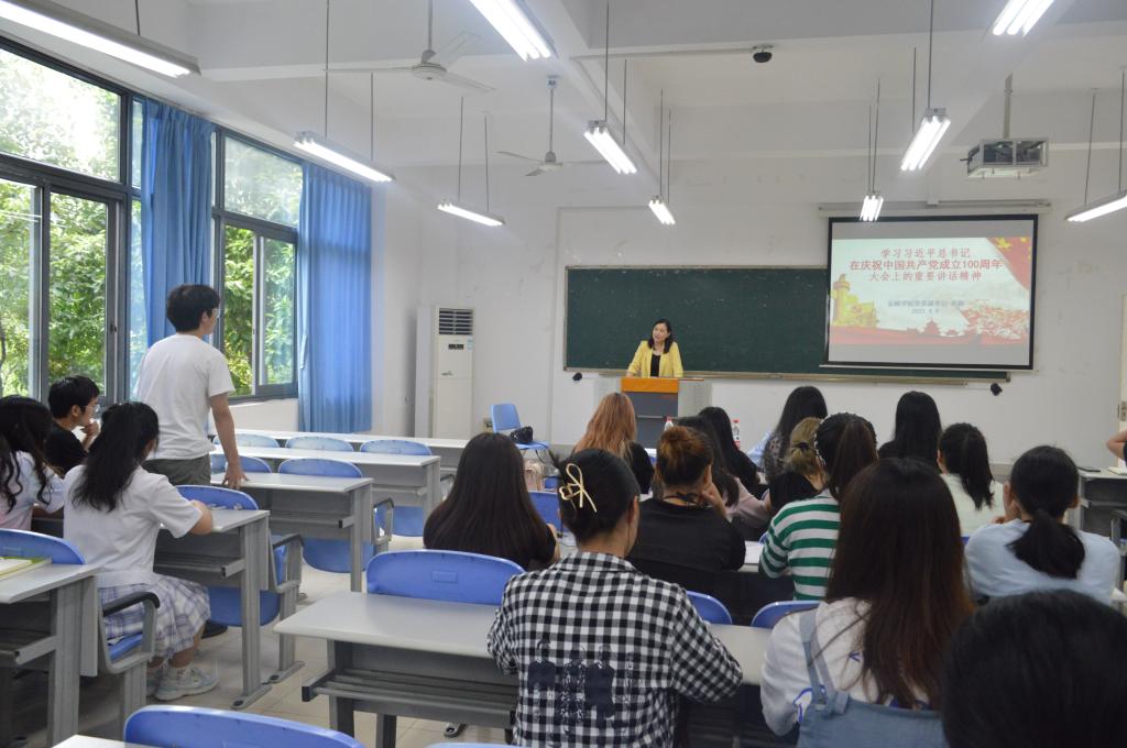余新副书记首先以问答的方式引导大家理解一百周年讲话涵盖的内容,号召大家梳理讲话的主要内容,学习里面的重要精神。接着从百年历程、百年精神、百年展望和百年寄语四个方面进行讲述,分别阐述了四个伟大成就、伟大建党精神、“九个必须”等。最后,学习了习近平总书记对青年的寄语,“未来属于青年,希望寄予青年”,作为青年人,要以实现中华民族伟大复兴为己任,增强做中国人的志气、骨气、底气,不负时代,不负韶华,不负党和人民的殷切期望!