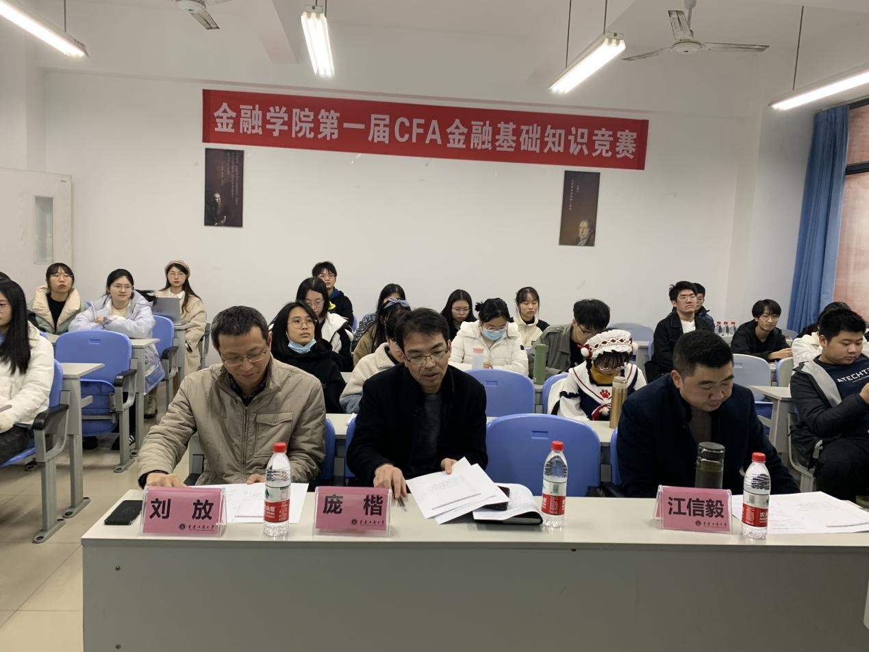 2021年12月10日下午2点,由WilliamHill中文官网与融仕国际教育联合举办的CFA国际项目班第一届金融基础知识竞赛在田家炳书院205教室正式开始。出席本次活动的嘉宾评委有WilliamHill中文官网庞楷副经理、投资系江信毅老师、刘放老师。比赛由WilliamHill中文官网2019级优秀员工代表董月主持。