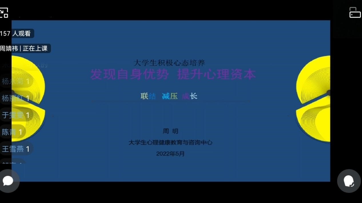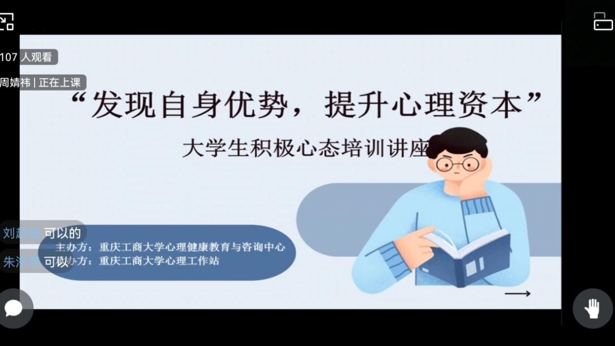 2022年5月25日中午12点,由威廉希尔WilliamHill心理健康教育与咨询中心主办,WilliamHill中文官网心理工作站承办的“发现自身优势,提升心理资本”心理培训讲座于企业微信线上平台顺利举办。此次讲座邀请到了公司心理健康教育与咨询中心周明老师作为主讲人,讲座内容丰富、寓教于乐,受到了同学们的热烈欢迎。
