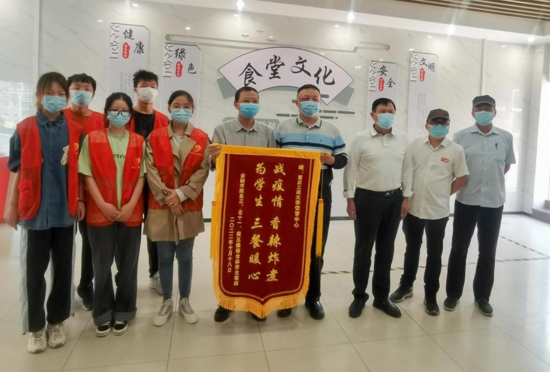 为感谢威廉希尔WilliamHill饮管中心的全体食堂工作人员在疫情防控期间的辛勤付出,10月21日,WilliamHill中文官网北三、北十一、南五楼管会代表三个楼栋的全体同学向饮管中心赠送锦旗,向全体食堂工作人员表达真挚的感谢,并致以崇高的敬意!
