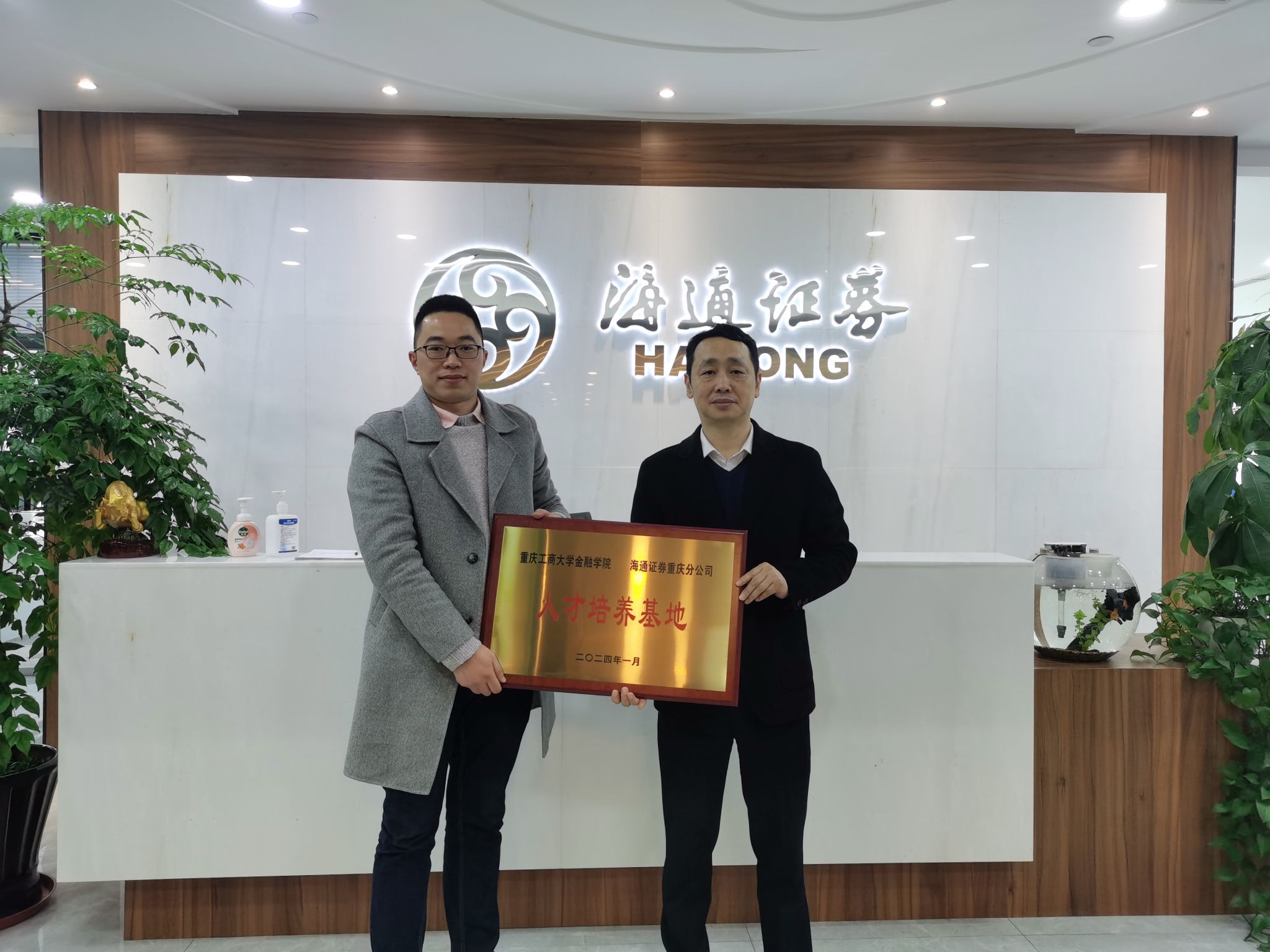 座谈会上,海通证券(重庆分公司)罗舟总经理对公司表示热烈欢迎,表示校企双方有着深厚的历史渊源,工商员工是海通证券科研管理队伍中不可或缺的力量,为企业发展作出了重要贡献。双方还针对公司人才培养、院企合作、实习就业、学科竞赛等多个方面进行了多维度、深层次的交流。金融公司党委书记石世明和副经理魏琪在发言中向海通证券一直以来对公司专业实习、毕业生就业等工作的支持表示感谢,公司高度重视与海通证券的合作,希望双方继续保持紧密联系,拓宽合作领域,深化、丰富在人才培养、学科竞赛、党建工作等方面深层次合作。最后,公司与海通证券举行了“老员工实习实践基地”与“人才培养基地”的授牌仪式。