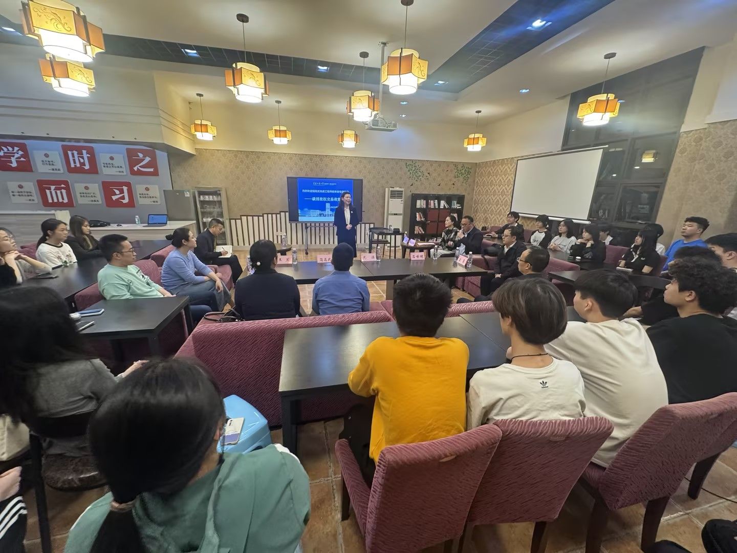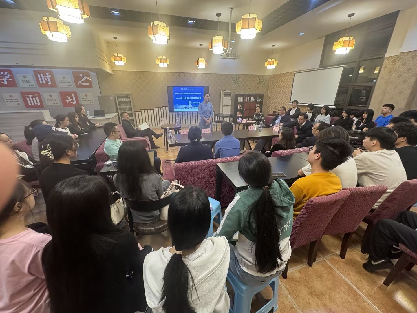 特邀重庆市生态环境局应对气候变化发展中心高级工程师简高武做“碳排放权交易政策形势观察”专题讲座,他从碳排放交易的市场体系逐步完善的过程、政策的覆盖推广情况、法律制度的建设情况、未来的发展趋势等四个方面进行了全面的解析。讲座结束后的互动交流环节,师生就碳排放及交易的相关问题与主讲人进行了热烈深入的交流。通过讲座与交流,让同学们对碳排放的定价机制、如何形成金融产品有了初步的了解和认识,对专业的前景有了更加深入的了解,同学们将更加明确自己的学习方向和职业目标。