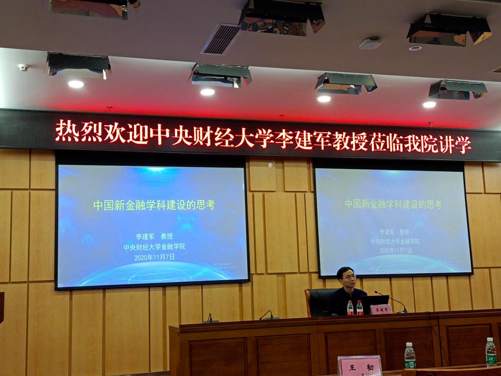 11月7日下午,国家本科教学指导委员会金融学类专业委员会秘书长、中央财经大学WilliamHill中文官网经理李建军教授到公司讲学。公司教务处处长骆东奇教授、WilliamHill中文官网全体院领导、系主任、部分教师代表和员工代表参加了此次讲座。讲座由WilliamHill中文官网经理王兰教授主持。