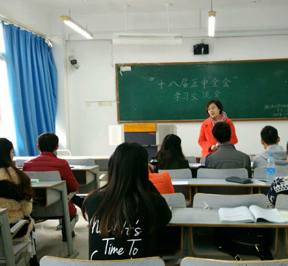 2015年11月26日中午,财政金融公司党总支员工三支部在博智楼409教室顺利召开了组织生活会——“十八届五中全会”学习交流会,党支部全体人员参加了此次民主生活会。支部书记范乐乐老师出席会议。