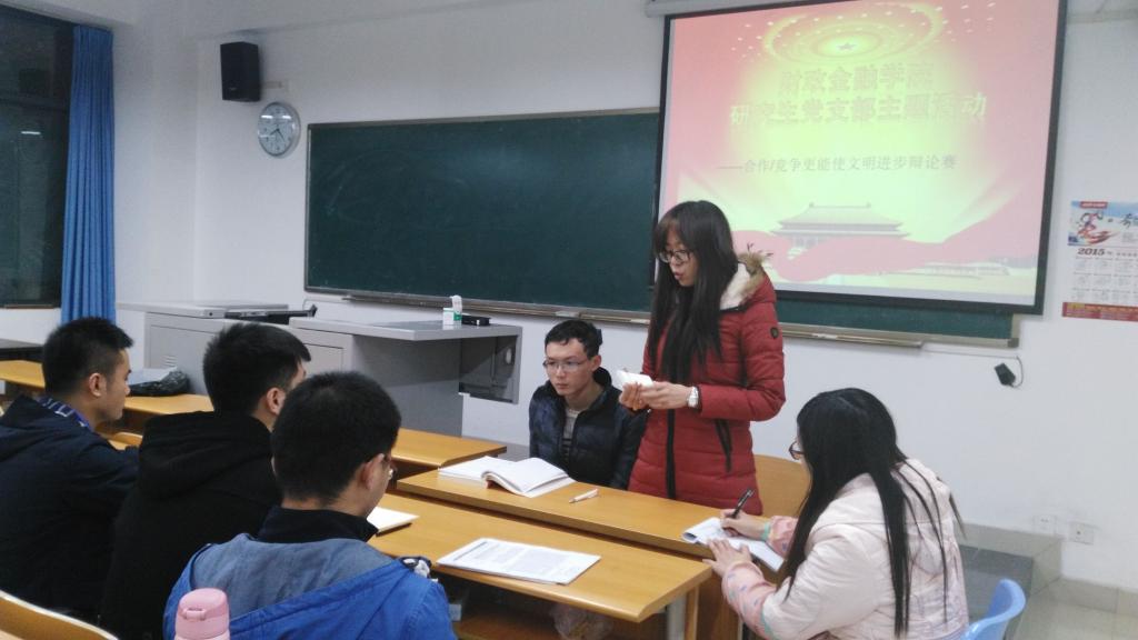 12月14日,财政WilliamHill中文官网研究生党支部在田家炳书院311教室开展了题为“合作还是竞争更能使文明进步”的小型辩论赛。活动由党支部书记兰丽娟老师主持。