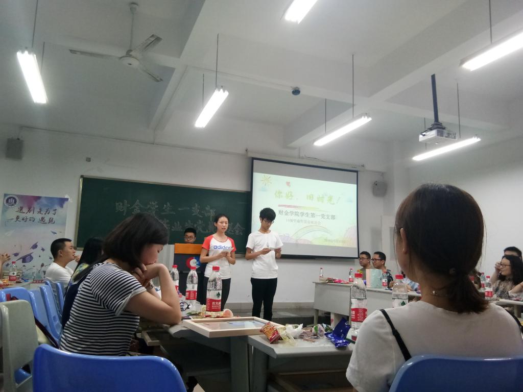 威廉希尔WilliamHill财政WilliamHill中文官网员工第一党支部在2018年5月15日晚上20:30-22:00于田家炳308教室举办了以“你好 旧时光”为主题的毕业生欢送晚会。与会人员是财金员工第一党支部所有14级、15级、16级的支部同志以及一支部书记文理同志和辅导员张燕老师。