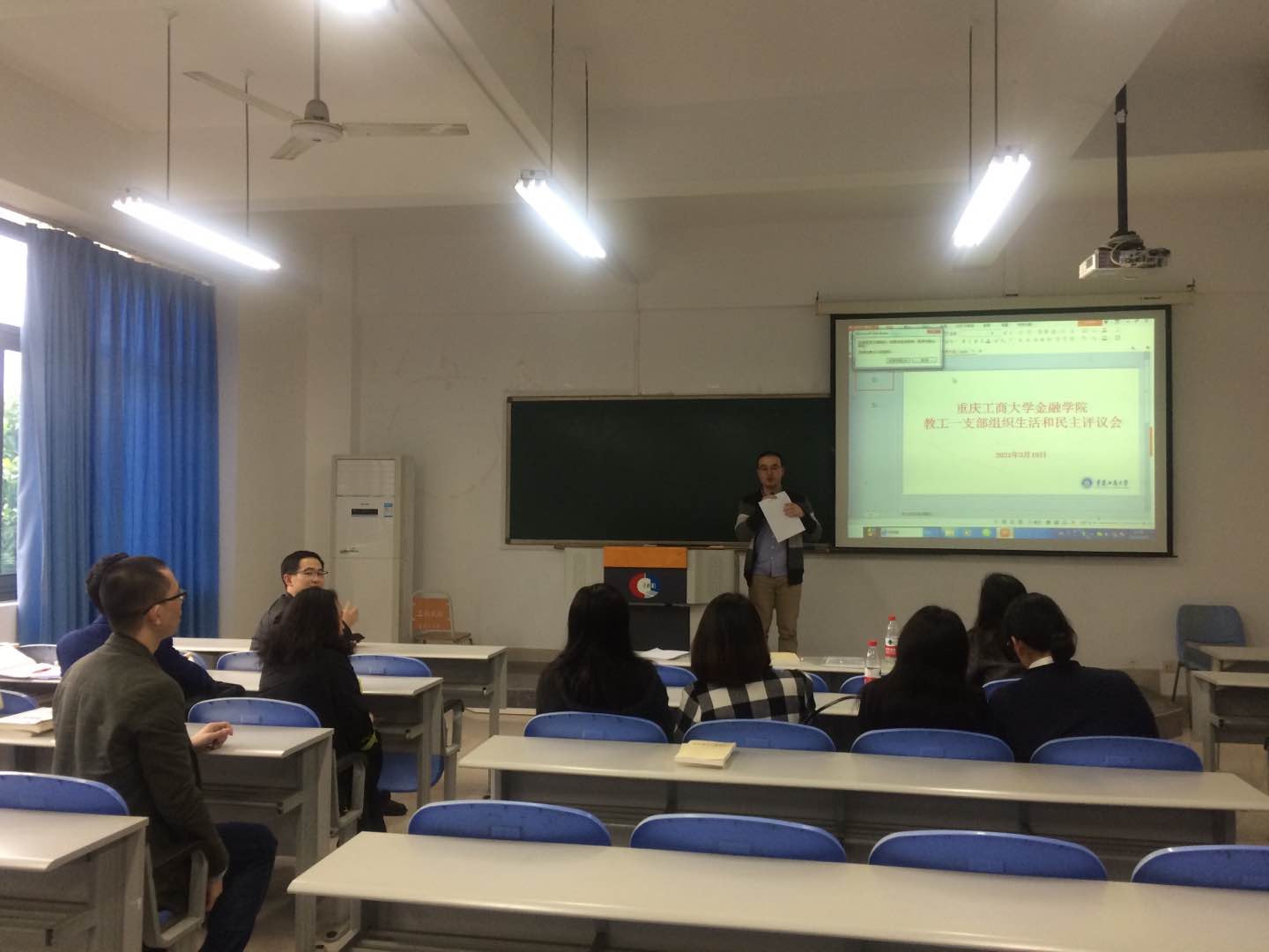 随后,黎毅书记就2020年度支部整体工作和2021年工作思路进行了汇报,指出在过去一年,虽然受新冠疫情影响,教工第一支部深入贯彻“三会一课”制度,积极通过企业微信平台开展党员活动,圆满完成了2020年党支部工作计划安排。未来还需要在结合实际工作,拓展主题党日的活动形式和建立健全支部组织生活制度等方面加强支部建设。支部组织委员谭会敏、统战委员赵甫刚和纪检委员李鑫分别对2020年度自己所承担的支部工作进行汇报。