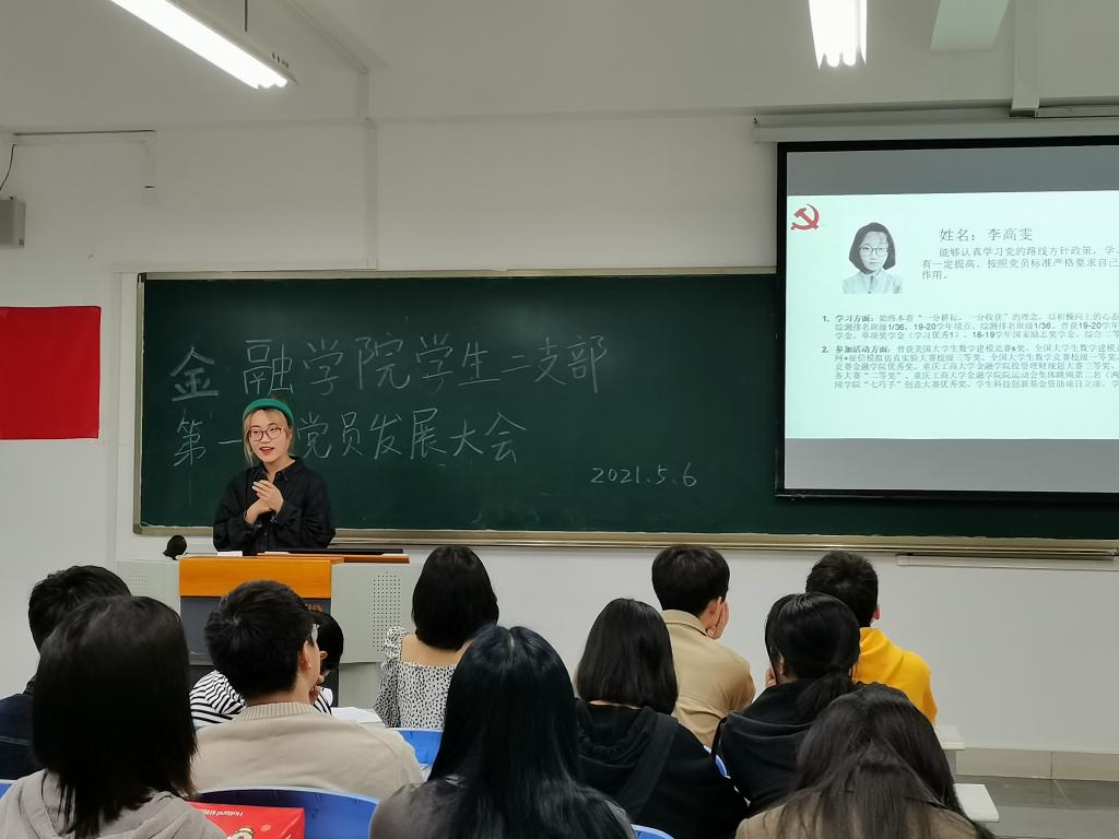 会议正式开始,并严格按照以下流程进行党员发展:首先,发展对象在讲台上从思想、学习、参加活动等多个方面介绍自己的个人情况及入党动机;接着,由该发展对象的入党介绍人介绍该同志的实际情况,在给予一定的肯定的同时也提出了对该同志未来的期望;接下来由周杨森同志发起投票,支部正式党员对该发展对象是否能够成为预备党员进行表决;最后,发展对象对最终的发展结果发表自己的感言。