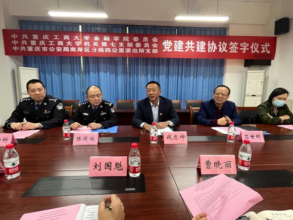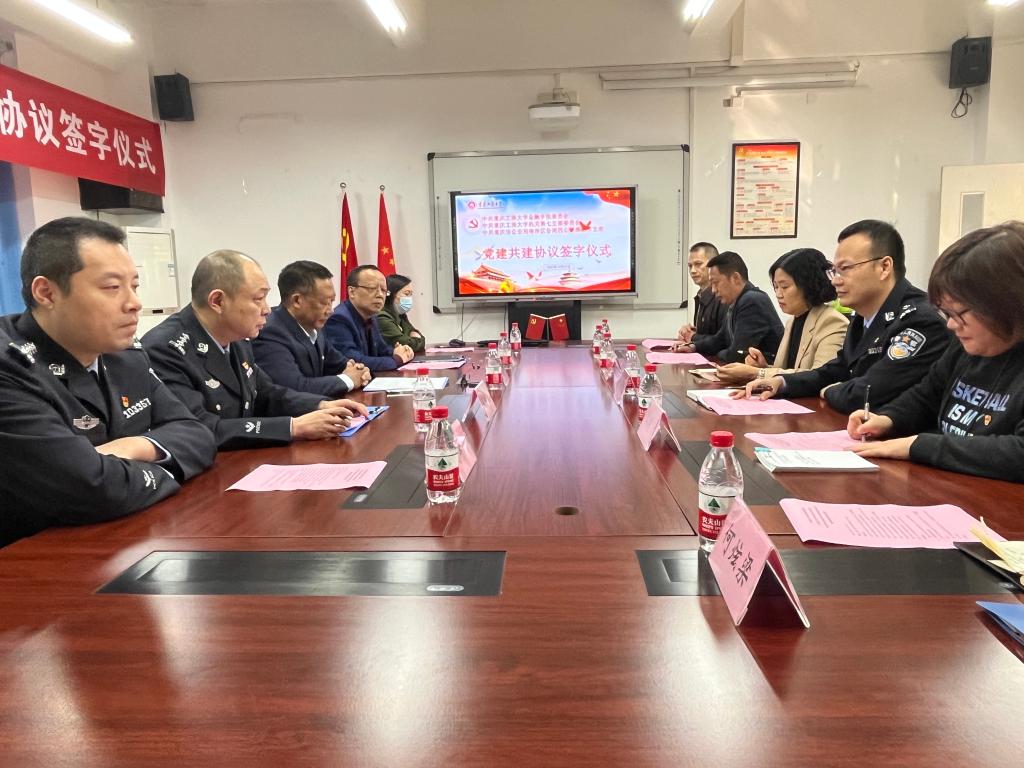 仪式上,重庆市公安局南岸区分局四公里派出所党支部书记、所长陈俊池,公司机关党委第七支部书记、保卫部部长(保卫处处长)钱忠坤,公司党委书记、副经理石世明代表三方签订了“党建共建”协议书。