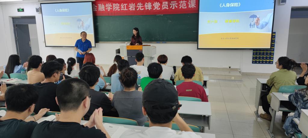 示范课由石晨曦博士讲授,授课班级为2021级保险1、2班,公司无课程安排的全体党员教师参加本次公开课。石老师本节课主要讲授了健康保险的有关知识。她结合大家刚刚共同抗击新冠疫情的背景谈到健康教育、管理的意义和价值,让同学们感受到中国共产党的伟大和走新时代中国特色社会主义道路的理论自信、道路自信、制度自信和文化自信。通过一段视频引入了“健康保险”这一概念,在大家对健康保险有了基本了解后,向大家介绍了健康保险的保险标的、理赔方式以及特点。在讲授中,石老师对同学们进行提问,同学们积极回答问题,表达自己的想法,通过提问的方式,让同学们明确了对健康保险所承保的“疾病”的定义。在讲述健康保险合同的过程中,石老师以板书形式清晰明了地区分了“保险期限”、“责任期限”、“等待期”三个不同的概念。最后,石老师将健康保险与人寿保险、健康保险与意外伤害保险进行对比,帮助同学们更好地区分不同险种。