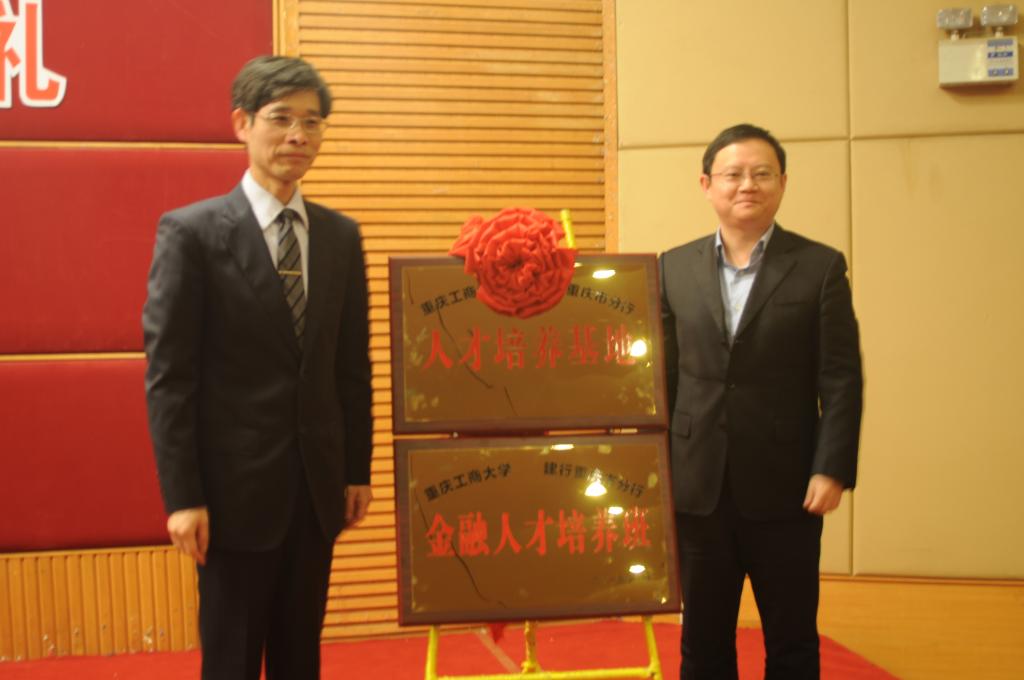 典礼共有五项议程。王栎总经理向大家介绍金融人才培养班的组建情况,她从团队力量、人才培养方式、公司管理、培训考核等方面作出详细说明,最后预祝首届建行人才班取得圆满成功、同学们学有所成。学员代表张梦婷代表全体同学对中国建设银行重庆市分行所给予的机会、对母校的苦心栽培表示衷心感谢,并表示一定会珍惜此次机会,为成为优秀的金融人才而努力学习。孙芳城董事长与张希副行长共同为“中国建设银行重庆市分行金融人才培养班”、“中国建设银行重庆市分行人才培养基地”揭牌。随后,文姜元副行长对公司在过去十余年中对建行的大力支持、在共建金融人才培养班中付出的努力表示感谢,并表示“建行班”的成立是对人才培养模式的全新探索,一定会成为人才培养的新高地,为推动重庆经济发展助力。
