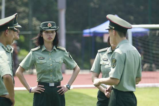 一开始,我在想像训练我们的教官会是什么样子。是高大威猛的汉子?是五大三粗的壮男?还是笔挺英武的帅哥?唯独没想到会是一位巾帼美女。她看似娇柔,但身体里蕴藏着宏大的力量;她看似文静,但骨子里包含着不屈的傲骨;她看似瘦弱,但眉宇间凝聚着铁血的正气。她就是我们美丽大方英气逼人的美女教官。