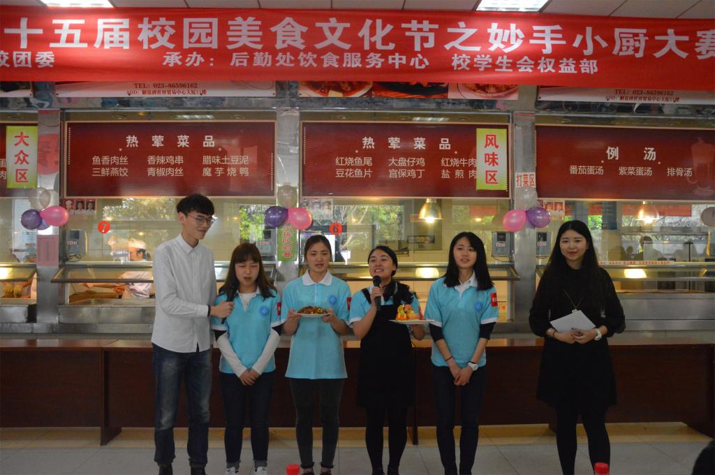 2017年4月21日下午,威廉希尔WilliamHill第十五届美食节之“妙手小厨大赛”于兰花湖校区成功举办。威廉希尔WilliamHill后勤处副处长朱富生,校团委陈琛老师,人才招聘处周婷老师,馨园、兰园食堂经理潘阳刚、周维刚先生,校员工会主席肖程钱出席本次大赛并担任评委。
