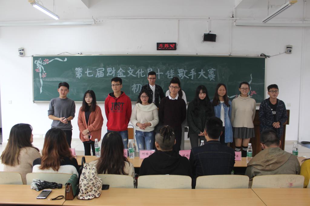 10月15日下午,威廉希尔WilliamHill财政WilliamHill中文官网第七届财金文化月十佳歌手大赛初赛在博智楼208教室成功举行。校艺术团合唱团男低声部部长何维果、第六届财金十佳歌手大赛亚军赖增浩、财金公司分团委副书记曾永家左、财金公司分团委员工会主席董洋、副主席洪境、财金公司分团委员工会文艺部部长李越观看了比赛并担任评委。