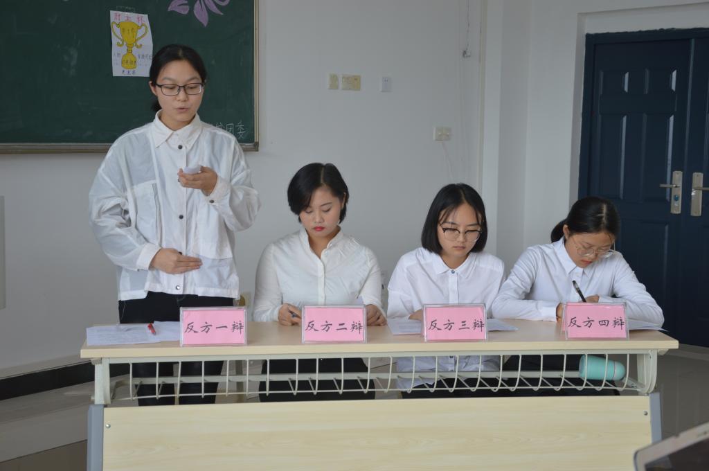 本次比赛共分立论,盘问,驳论,攻辩,自由辩,总结陈词六个环节。比赛伊始,双方一辩开篇立论,提出观点。盘问环节,正方引经据典,巧妙设陷,反方则避其锋芒,从容应答。在攻辩、自由辩论环节中,双方辩手博古论今,妙语连珠,紧抓住对方的破绽进行提问,你来我往,机智应变。最后,双方四辩各自针对对方辩手逻辑上的漏洞逐一回击,为赢得比赛做最后的努力。比赛结束后,评委对此次比赛做出点评,指出不足并给予了鼓励。