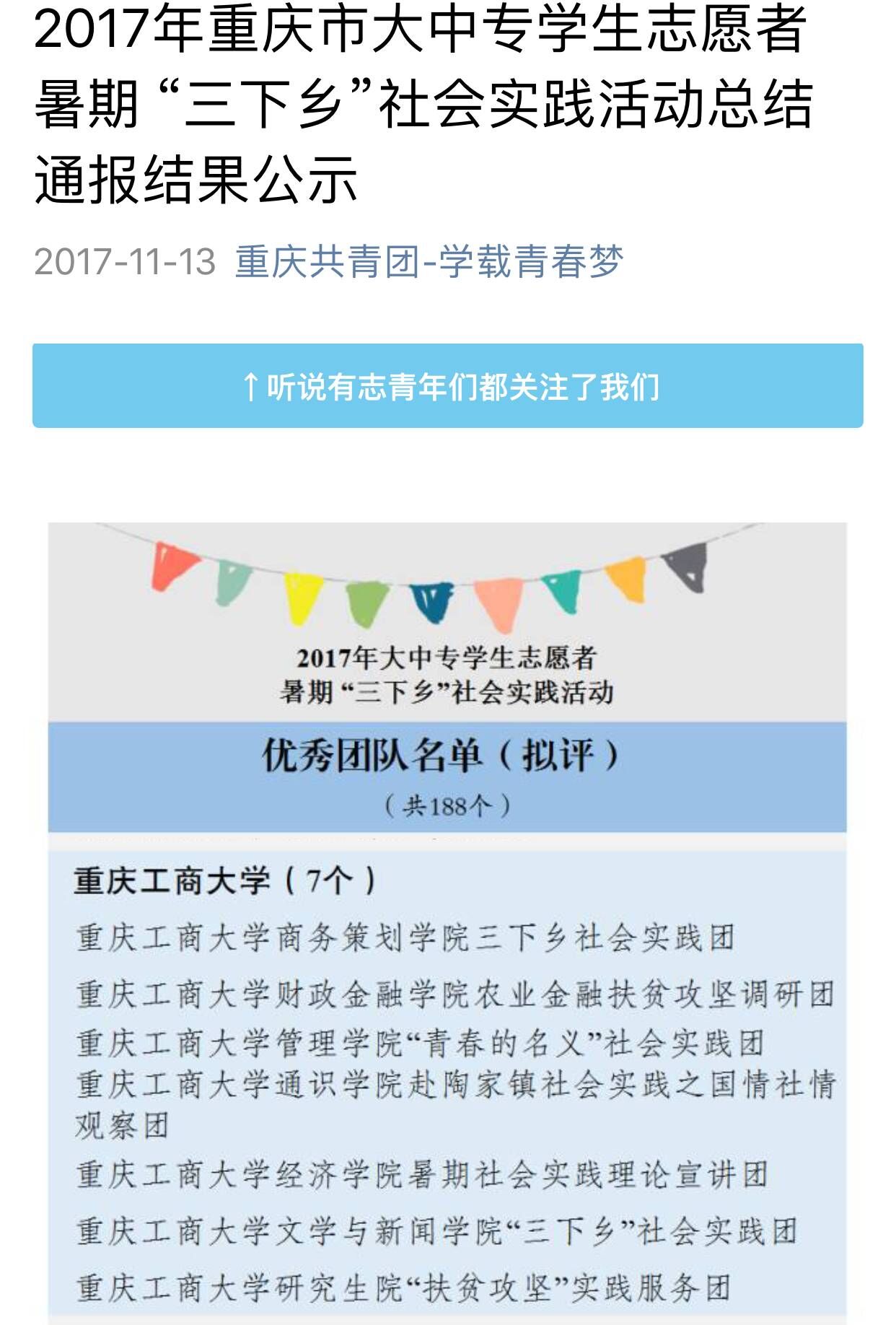 此次暑期三下乡,财政WilliamHill中文官网发挥专业优势,把握时代主脉,组织了农业金融扶贫攻坚调研团,深入涪陵增福乡实地考察扶贫情况,点面结合开展多层次金融知识扶贫服务宣讲,用专业的知识和新的理念助力科技农业新发展。该团队在共青团中央网络影视中心举办的“线上三下乡,扶贫我先行”活动中荣获“优秀新媒体传播团队奖”,同时公司三下乡实践团队还获得重庆市暑期“三下乡”社会实践活动优秀团队以及校级优秀团队,除此之外还获得了校级暑期三下乡社会实践活动先进集体。