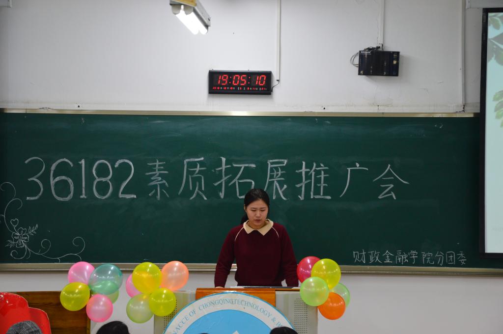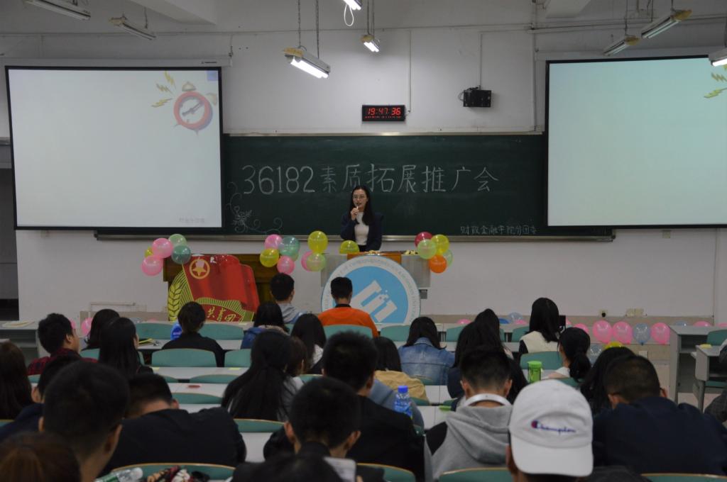 2018年10月19日晚上七点,由财政WilliamHill中文官网分团委主办的第八届青马文化月之“36182”素质拓展推广会活动在博智楼07106顺利开展。本次素拓推广会对18级CFA新生及17级同学的素质拓展计划提出合理化建议,引导和激励员工更好地进行素质拓展。