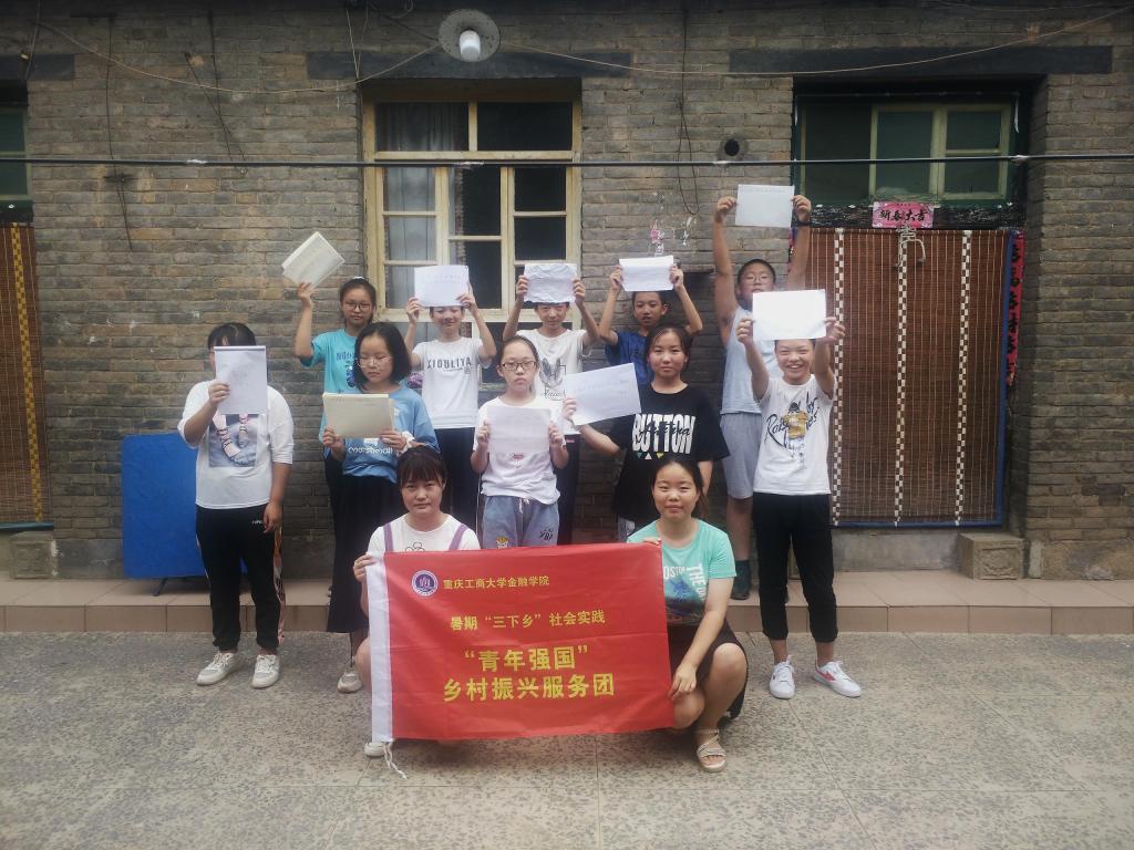 服务团成员针对乡村教育存在团队力量不足、学习资源相对缺乏等问题,对家乡的中员工开展支教活动,讲授基础理论课,帮助孩子们重温课本理论知识,帮助他们更好地学习和理解重点难点。得知本村曾发生过金融诈骗案,服务团成员利用专业所学,特地开展了一堂金融常识课程,帮助他们提升自己的金融意识,避免走入理财陷阱。扶贫必须扶志,在辅导课业的同时服务团成员还引入《习近平与大学生朋友们》进行学习理念、成长理念、价值观的宣讲。“中国开放的大门只会越开越大!”这是一位同学在听完这堂分享课之后的感想。从他们的听课专注度、他们的激情澎湃、他们的积极答复,实践团成员都真切感受到孩子们对国家对家乡的热爱以及想要成才以建设更好家乡的信念。