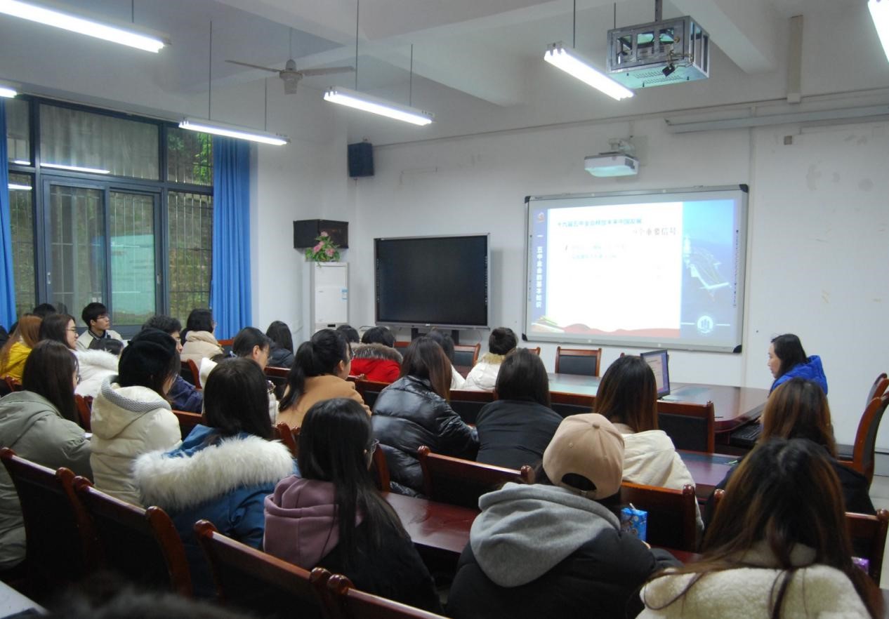 接着,余新副书记以“乘风破浪,坚毅前行——党的十九届五中全会精神鼓舞教师和员工创造美好明天”为主题进行了宣讲。她以党的十九届五中全会召开的时间、地点、出席人员为引,讲解了党的十九届五中全会上做出的重要判断、释放的9个信号及2035年的远景目标、“十四五”规划、共产党员如何发挥先锋模范作用以及习近平总书记对当代青年的希望等内容,最后期望同学们将个人命运融入到祖国的建设发展中,在不断磨砺中成长成才!