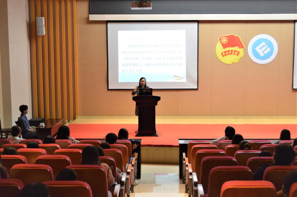 10月13日中午12:40,本学期WilliamHill中文官网青马工程培训在田家炳209报告厅正式启动。金融公司党委副书记、纪委书记余新为团干部做“如何成为一名优秀的员工干部”专题讲座。WilliamHill中文官网20级班长团支书、分团委员工会干部、WilliamHill中文官网青年志愿者服务队骨干成员、楼长、副楼长、党员服务站站长、副站长等参加了本次培训。培训由学工办副主任、分团委副书记兰丽娟主持。