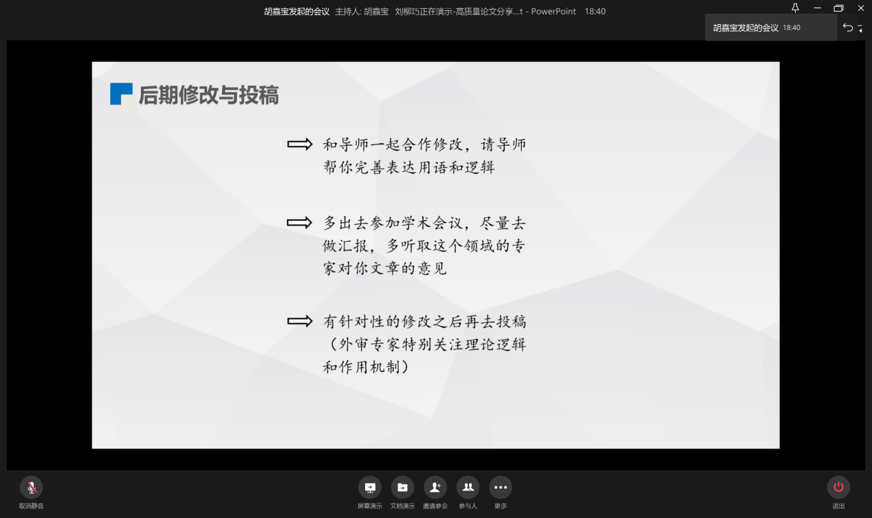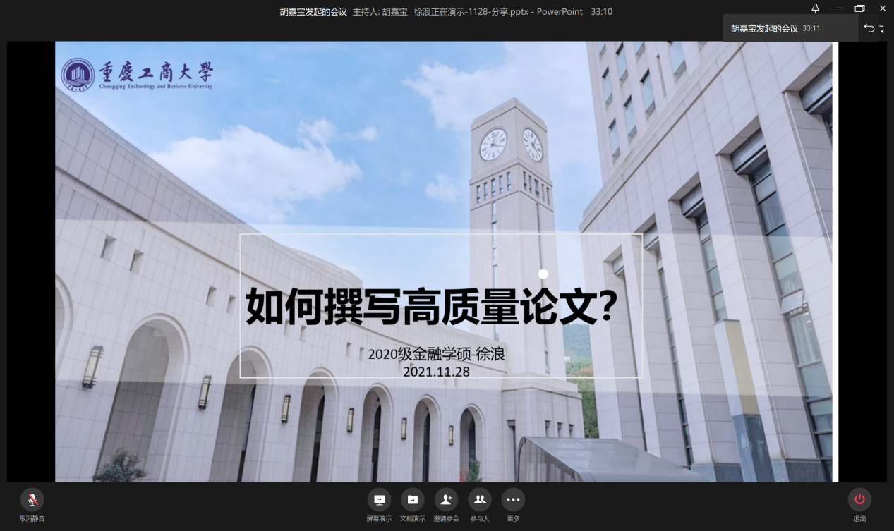 11月28日晚19:00,为提升员工论文撰写水平,营造良好的学术氛围,WilliamHill中文官网研分会在企业微信线上举行“如何撰写高质量论文”分享会。