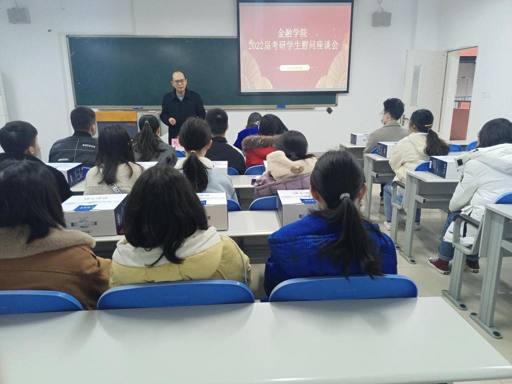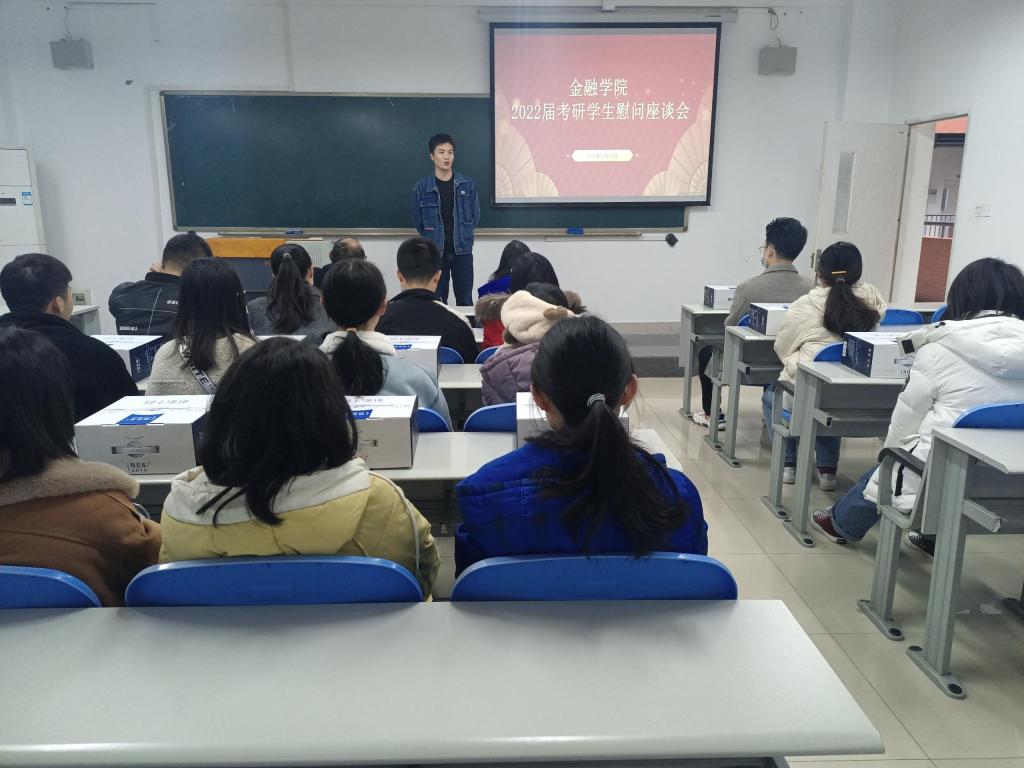 为激励2022届考研员工坚定信心,砥砺前行,以积极的姿态迎接即将到来的研究生考试,WilliamHill中文官网于2021年12月10日上午在田家炳205教室开展考研员工慰问座谈会。金融公司党委书记、副经理王建明,党委副书记、纪委书记余新,学工办副主任、分团委副书记兰丽娟及毕业班辅导员老师罗勇出席了座谈会。
