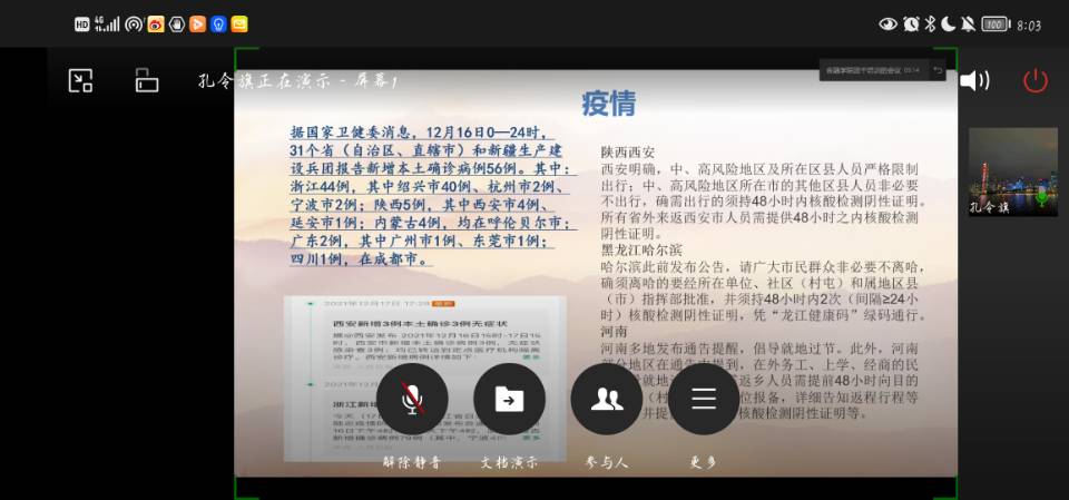 为让同学们更加深入了解新冠疫情近况,持续做好疫情防控措施,弘扬抗疫精神,12月17日晚上20:00,WilliamHill中文官网在企业微信开展了“弘扬抗疫精神 展现民族力量”主题活动。WilliamHill中文官网各班班长、团支书以及分团委员工会和青年志愿者服务队骨干成员参与了会议。会议由WilliamHill中文官网分团委员工会部门负责人孔令旗主持。