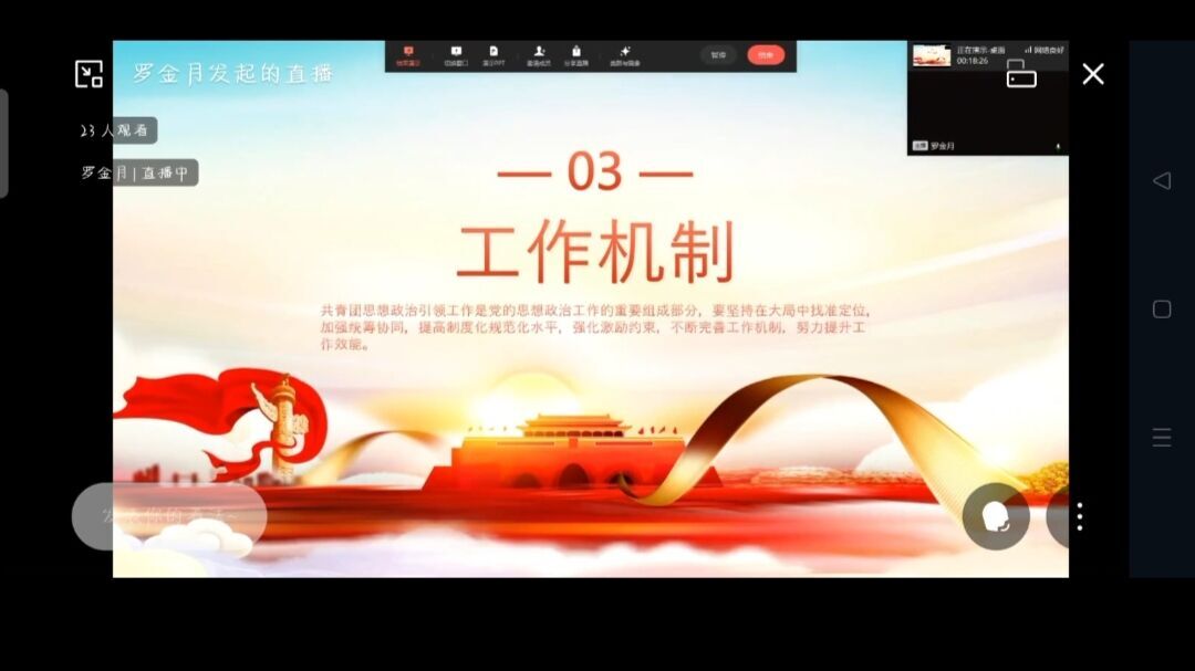活动在庆祝中国共青团成立100周年主题宣传片《共青春》主题曲《有我》的青春问答中拉开,同学们在细腻而又气势磅礴的旋律中感受一代代不负时代重托的中国青年模样。随后,WilliamHill中文官网分团委组织部部门负责人罗金月领学,内容涵盖团中央发布的《新时代加强和改进共青团思想政治引领工作实施纲要》及习近平总书记在中国人民大学考察时的重要讲话精神。她对《新时代加强和改进共青团思想政治引领工作实施纲要》中主要项目、基本方法、工作机制的具体规定进行详细讲解,在讲到开展劳动教育板块,号召同学们以五月“劳动月”为契机,积极投入到志愿服务、专业实践、社会调研等活动,把养成劳动习惯、强化劳动情感、掌握劳动技能结合起来,传播“崇尚劳动、热爱劳动、辛勤劳动”的道德风尚。在分享习近平总书记在中国人民大学考察时的重要讲话精神时,同学们纷纷表示备受鼓舞,深受感染,将牢记嘱托,“不负韶华,不负时代,不负人民,在青春的赛道上奋力奔跑,争取跑出当代青年的最好成绩”!