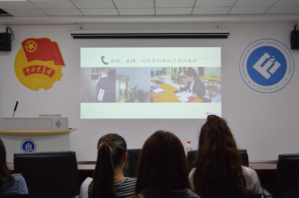 活动开始播放的面试视频让同学们切身感受到求职面试的具体情境。在视频中,三位同学面试时行为各有迥异,有的骄傲自负,目中无人;有的不懂装懂,态度不端;而有的同学礼貌待人,不骄不躁,结果显而易见。视频结束后,同学们纷纷分享自己的感悟,表示要引以为戒,在面试前做好充足的准备,面试中需要注意礼仪,为面试官留下好印象。2018级金融一班陈红伶同学分享面试经验:一要完善自己的简历,突出应聘岗位需求的资质和能力,提高简历与岗位的匹配度;二要了解岗位,通过招聘信息、实习实践、生涯人物访谈等方式完善对行业、岗位的认知,结合自身特性,明确求职目标,不可盲目从众;三要不断学习和总结,在面对简历石沉大海的情况,坚持不懈,以最后一次的心态对待每一次面试机会。她勉励同学们“追风赶月莫停留,平芜尽处是春山”。