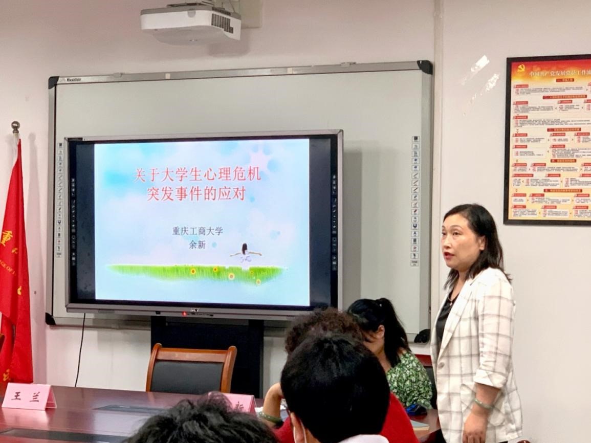 之后进入本次会议的主题,由余新副书记进行了“老员工心理危机突发事件的应对”讲座。余书记以老员工心理危机干预为核心,通过真实的案例分享,向在场的辅导员老师和同学们进行了深入浅出的讲解,使大家能够认识到心理健康教育的重要性,心理危机干预的必要性。学会突发危机的处置方法,务必做到三早——早发现、早干预、早治疗。同学们听过之后纷纷表示收获颇丰,在今后的学习生活中将秉承“长风破浪会有时,直挂云帆济沧海”的精神,关爱自我,关心同学,珍爱生命。