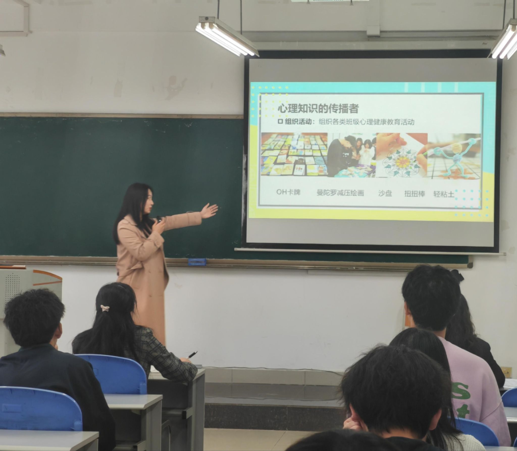 本次讲座汇聚了来自各个班级的心理委员,为他们提供更专业的心理知识和技能,以便更好地履行职责,为同学们的心理健康保驾护航。讲座邀请了张璐老师担任主讲。她以深入浅出的方式,系统地讲解了心理委员的角色定位、工作职责、自我关怀以及必备的心理辅导技巧。通过生动的案例分析,让心理委员们深刻认识到自己在班级中扮演的重要角色,不仅是同学们心理状态的观察者,更是温暖的倾听者和积极的引导者。